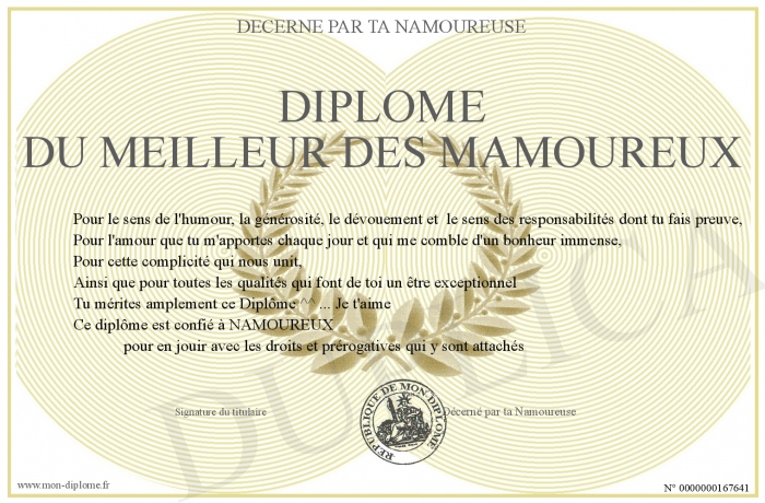 Envoyez par email votre Diplôme du Meilleur des MAMOUREUX personalisé