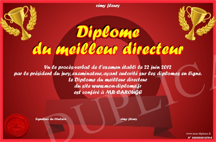 Envoyez par email votre Diplôme du meilleur directeur personalisé