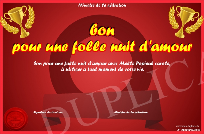 Envoyez par email votre bon pour une folle nuit d'amour personalisé
