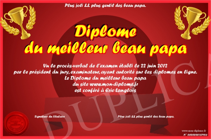 Envoyez par email votre Diplôme du meilleur beau papa personalisé