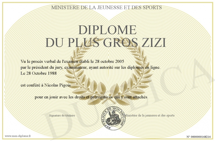 Envoyez par email votre Diplôme du plus gros zizi personalisé