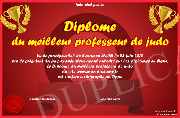 Envoyez par email votre Diplôme du meilleur professeur de judo personalisé