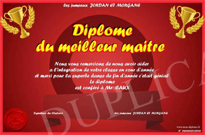 Envoyez par email votre Diplôme du meilleur maitre personalisé