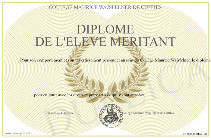 Envoyez par email votre Diplôme de l'élève méritant personalisé