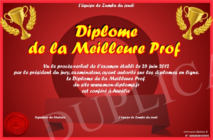 Envoyez par email votre Diplôme de la Meilleure Prof personalisé