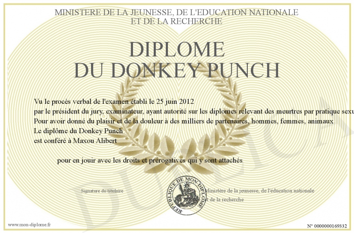 Envoyez par email votre Diplôme du Donkey Punch personalisé