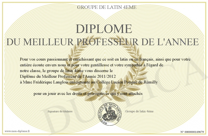 Envoyez par email votre Diplôme du Meilleur Professeur de l'Année personalisé