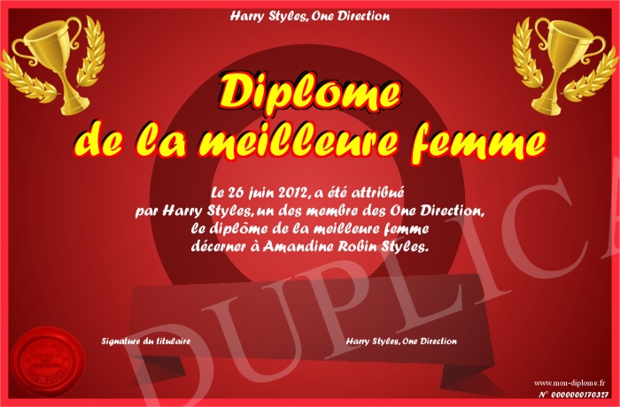 Envoyez par email votre Diplôme de la meilleure femme personalisé