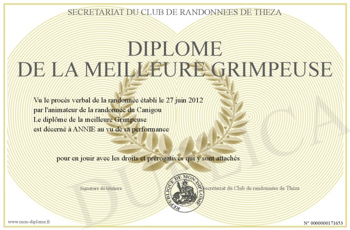 Envoyez par email votre Diplôme de la meilleure Grimpeuse personalisé