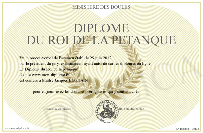 Envoyez par email votre Diplôme du Roi de la pétanque personalisé