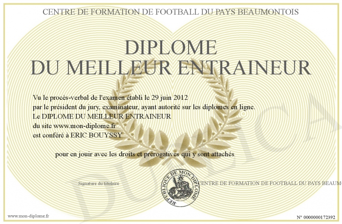 Envoyez par email votre DIPLOME DU MEILLEUR ENTRAINEUR personalisé