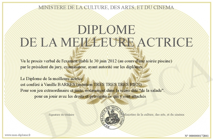 Envoyez par email votre Diplôme de la meilleure actrice personalisé