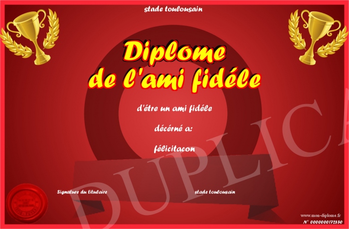 Envoyez par email votre Diplôme de l'ami fidéle personalisé