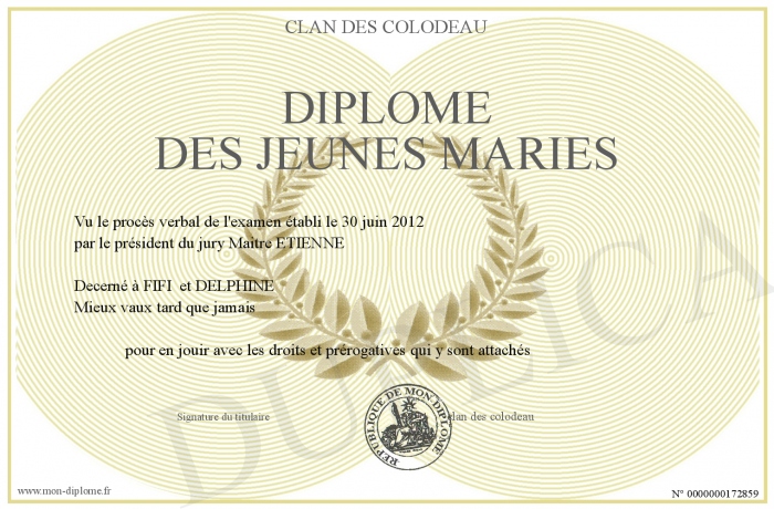 Envoyez par email votre Diplôme des jeunes maries personalisé