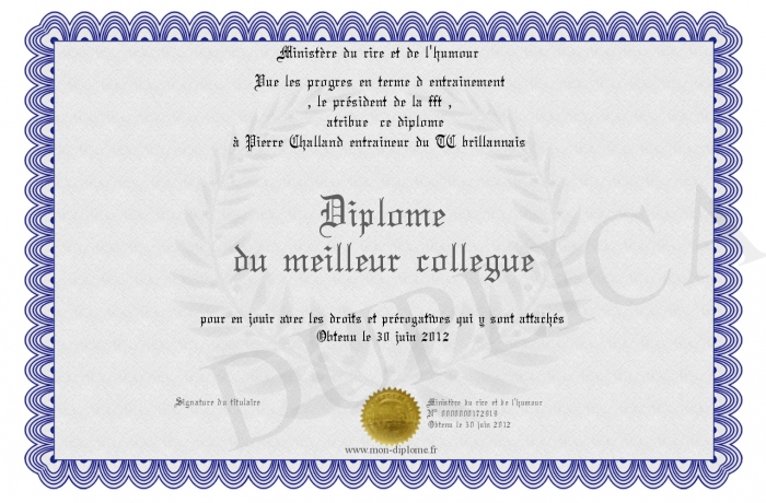 Envoyez par email votre Diplome du meilleur collegue personalisé