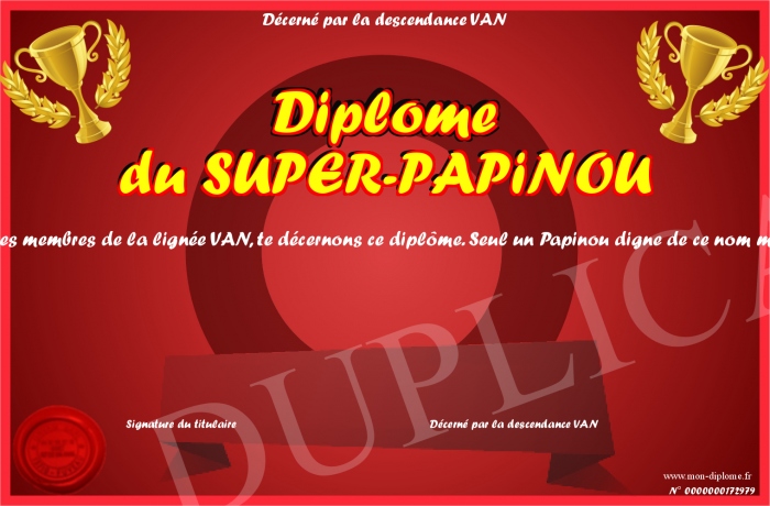 Envoyez par email votre Diplôme du SUPER-PAPiNOU personalisé