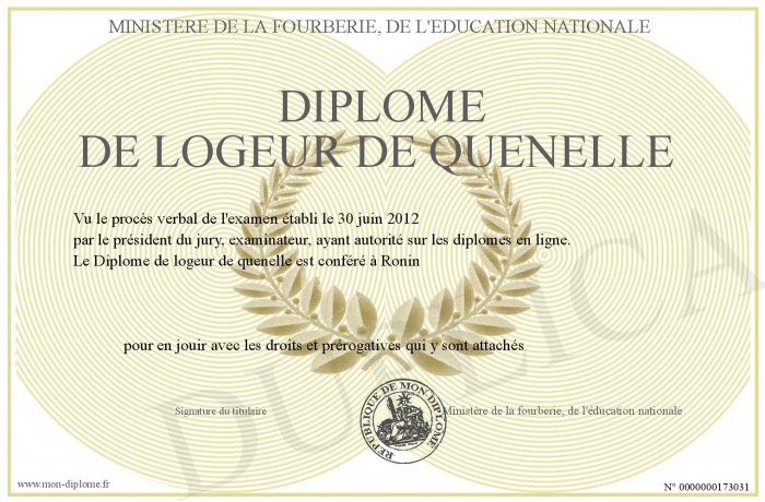 Envoyez par email votre Diplôme de logeur de quenelle personalisé