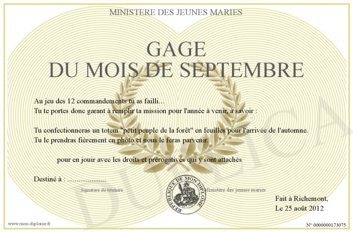 Envoyez par email votre gage du mois de septembre personalisé