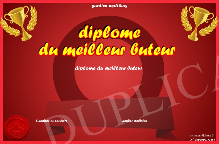 Envoyez par email votre diplome du meilleur buteur personalisé