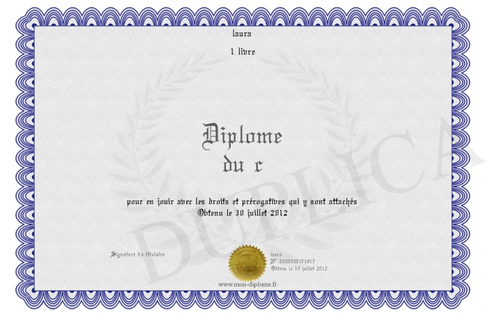 Envoyez par email votre Diplôme du c personalisé