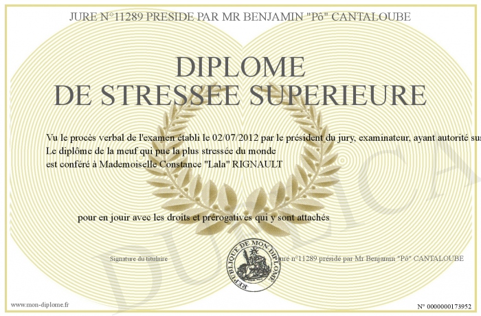 Envoyez par email votre Diplôme de stressée supérieure personalisé