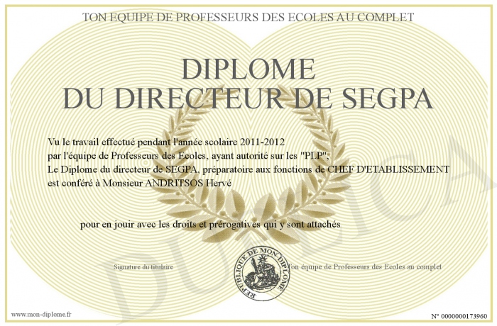 Envoyez par email votre Diplôme du directeur de SEGPA personalisé