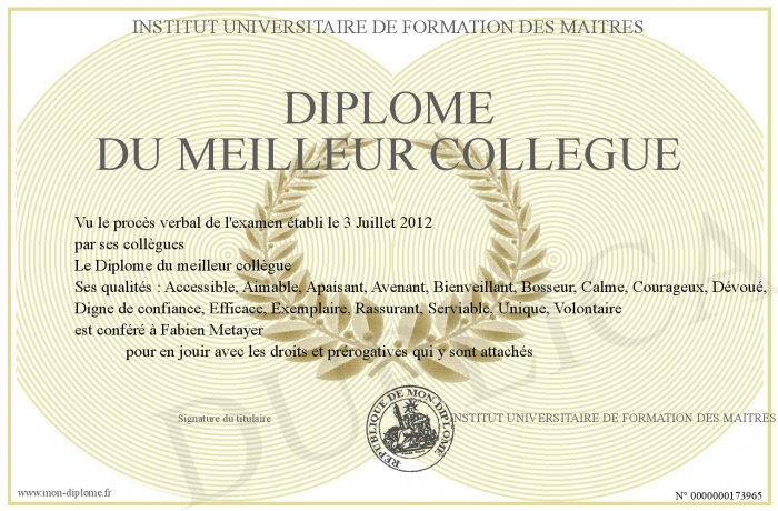 • Diplôme du meilleur collègue