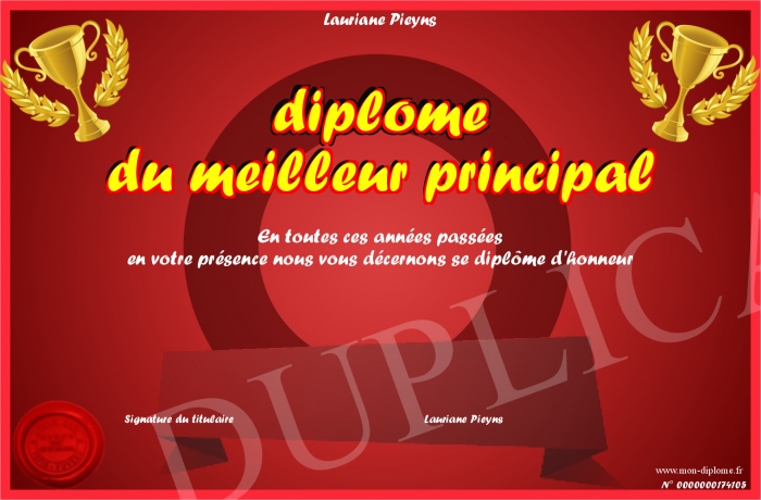 Envoyez par email votre diplôme du meilleur principal personalisé