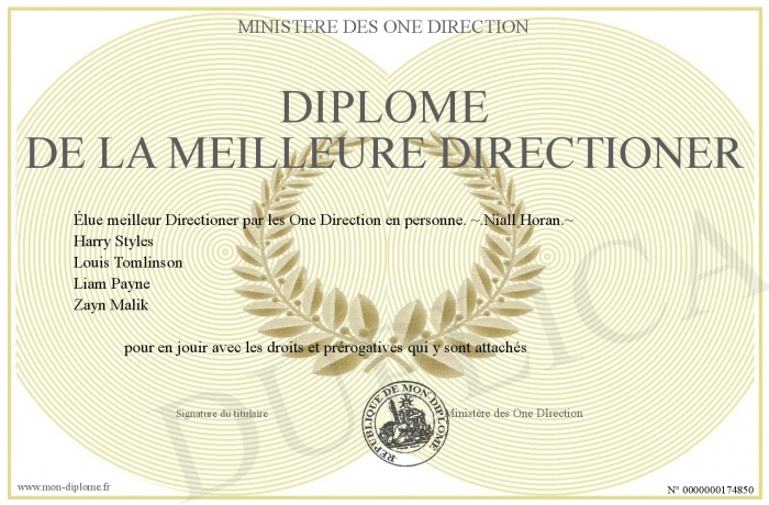 Envoyez par email votre Diplôme de la meilleure Directioner personalisé