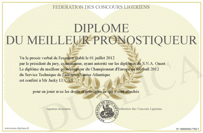 Envoyez par email votre Diplôme du meilleur pronostiqueur personalisé