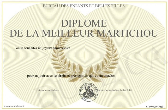 Envoyez par email votre diplôme de la meilleur martichou personalisé