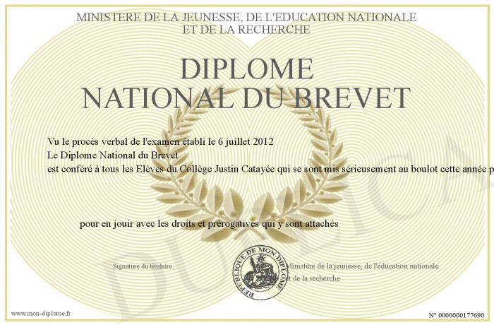Envoyez par email votre Diplôme National du Brevet personalisé