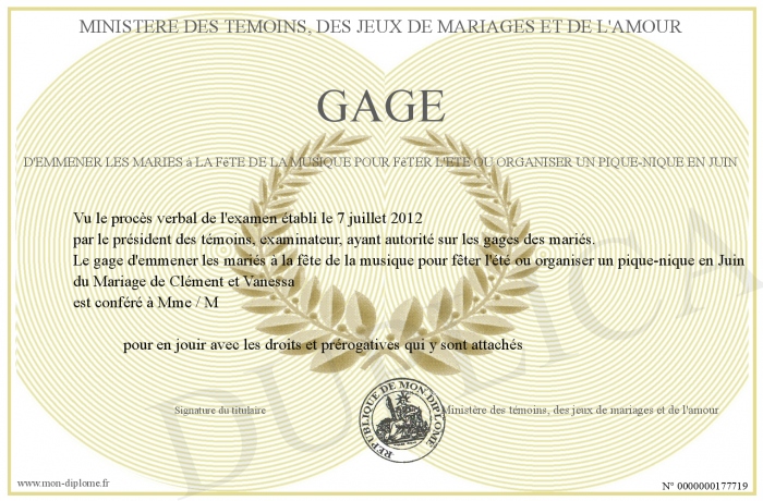 envoyé par le Ministère des témoins, des jeux de mariages et de l'amour !