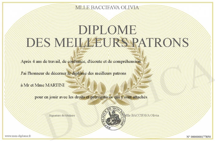 Envoyez par email votre Diplôme des meilleurs patrons personalisé
