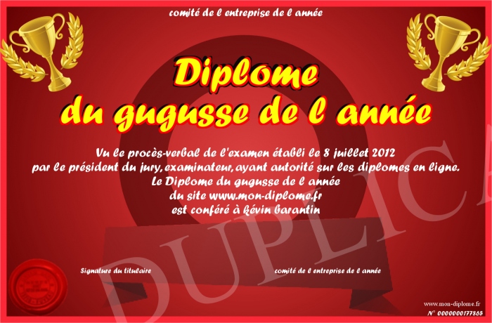Envoyez par email votre Diplôme du gugusse de l année personalisé