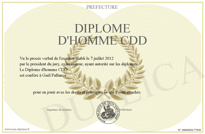 Envoyez par email votre Diplôme d'homme CDD personalisé