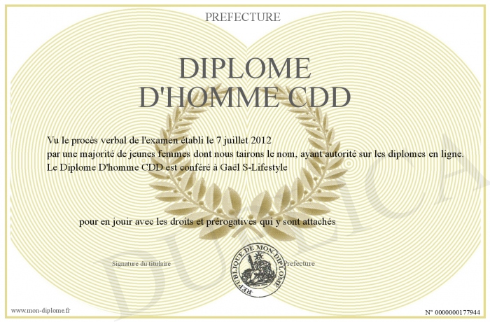 Envoyez par email votre Diplôme D'homme CDD personalisé