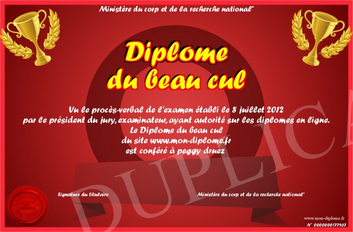 Envoyez par email votre Diplôme du beau cul personalisé