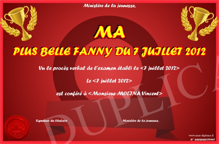 Envoyez par email votre MA PLUS BELLE FANNY DU 7 JUILLET 2012 personalisé