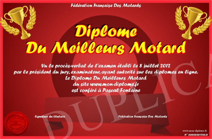 Envoyez par email votre Diplôme Du Meilleurs Motard personalisé