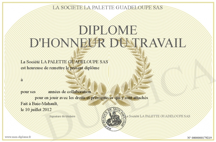 Envoyez par email votre Diplôme d'Honneur du Travail personalisé