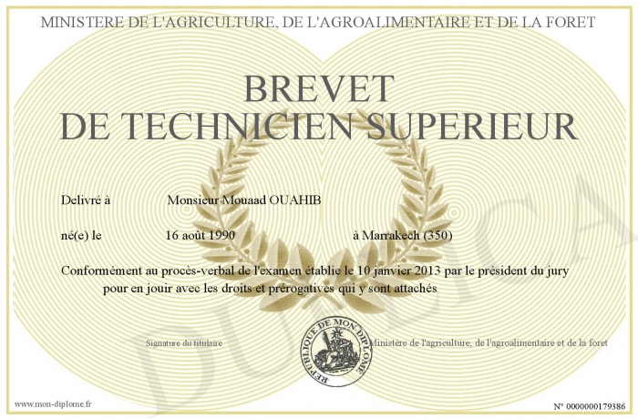 Envoyez par email votre Brevet de technicien superieur personalisé