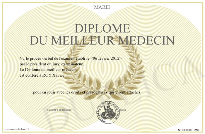 Envoyez par email votre Diplôme du meilleur médecin personalisé