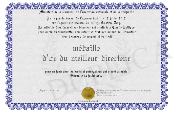 Envoyez par email votre médaille d'or du meilleur directeur personalisé