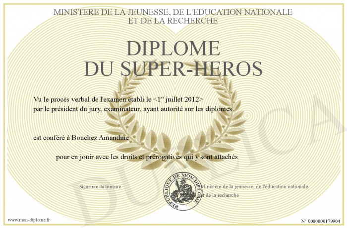 Envoyez par email votre Diplôme du Super-Héros personalisé