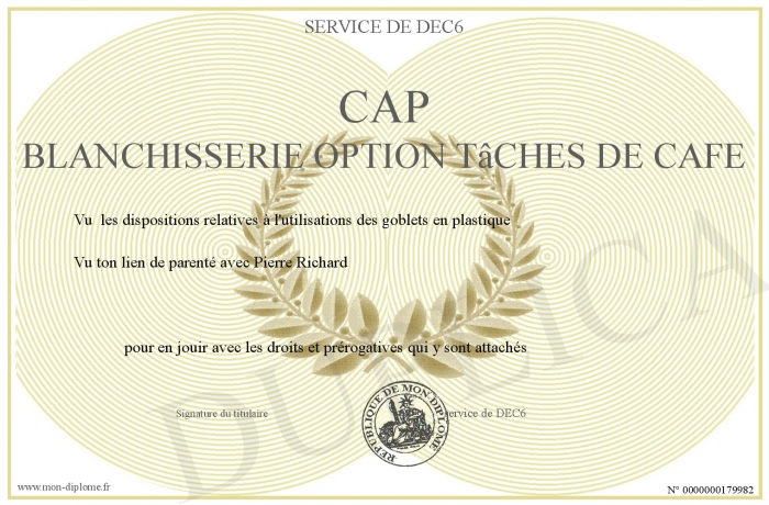 Envoyez par email votre CAP Blanchisserie option tâches de café personalisé
