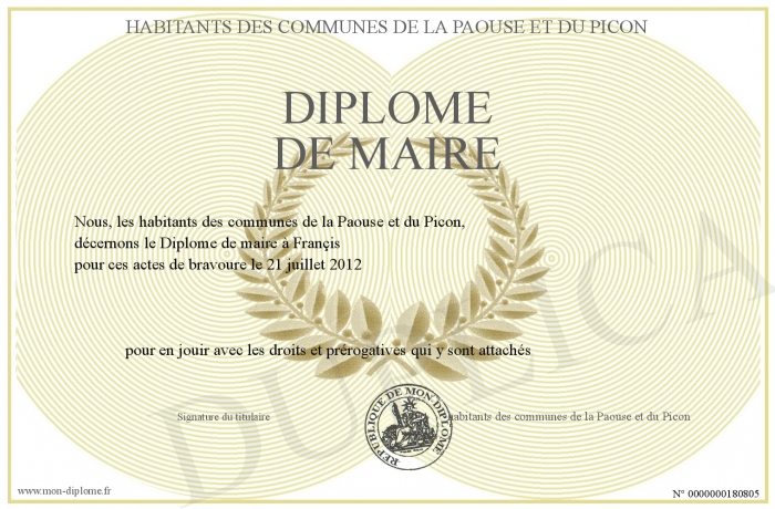 Envoyez par email votre Diplôme de maire personalisé