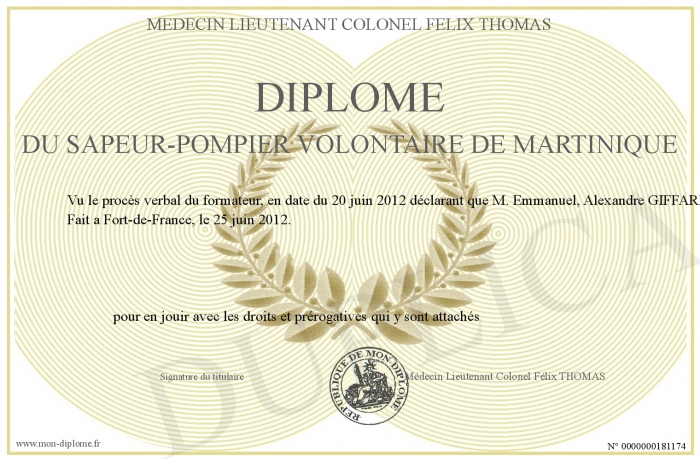 Envoyez par email votre Diplôme du sapeur-pompier volontaire de Martinique personalisé