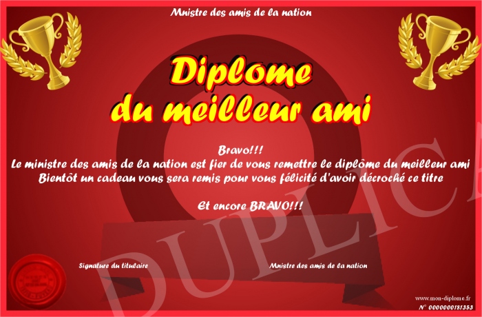Envoyez par email votre Diplôme du meilleur ami personalisé