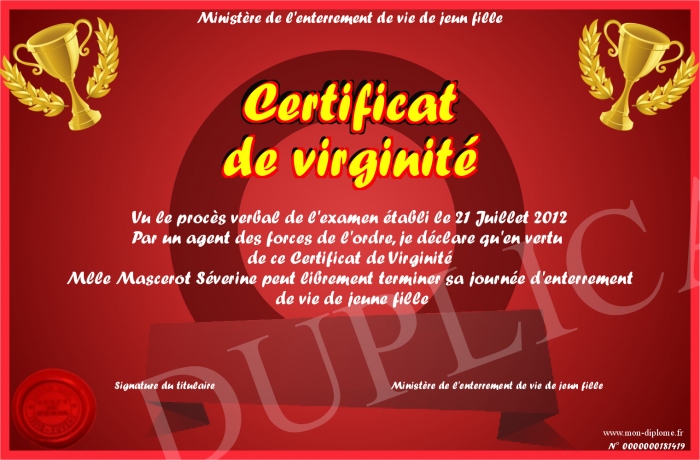 envoyé par le Ministère de l'enterrement de vie de jeun fille !